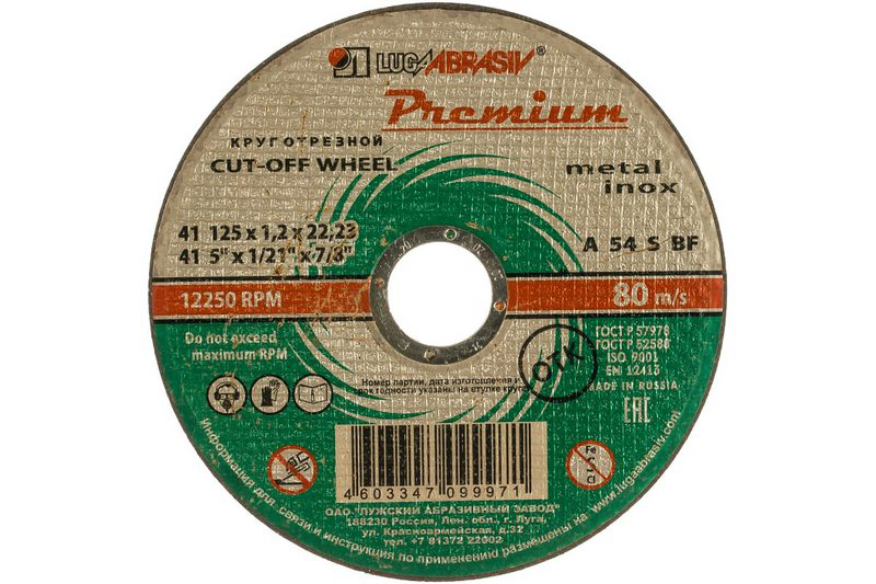 В нашем магазине «Главэлектрика» в Волгограде, вы можете приобрести товар: «Круг отрезной по металлу+нерж. 125 х 1,2 х 22 мм, ПРЕМИУМ (Луга)// Россия» с доставкой по г. Волгоград.