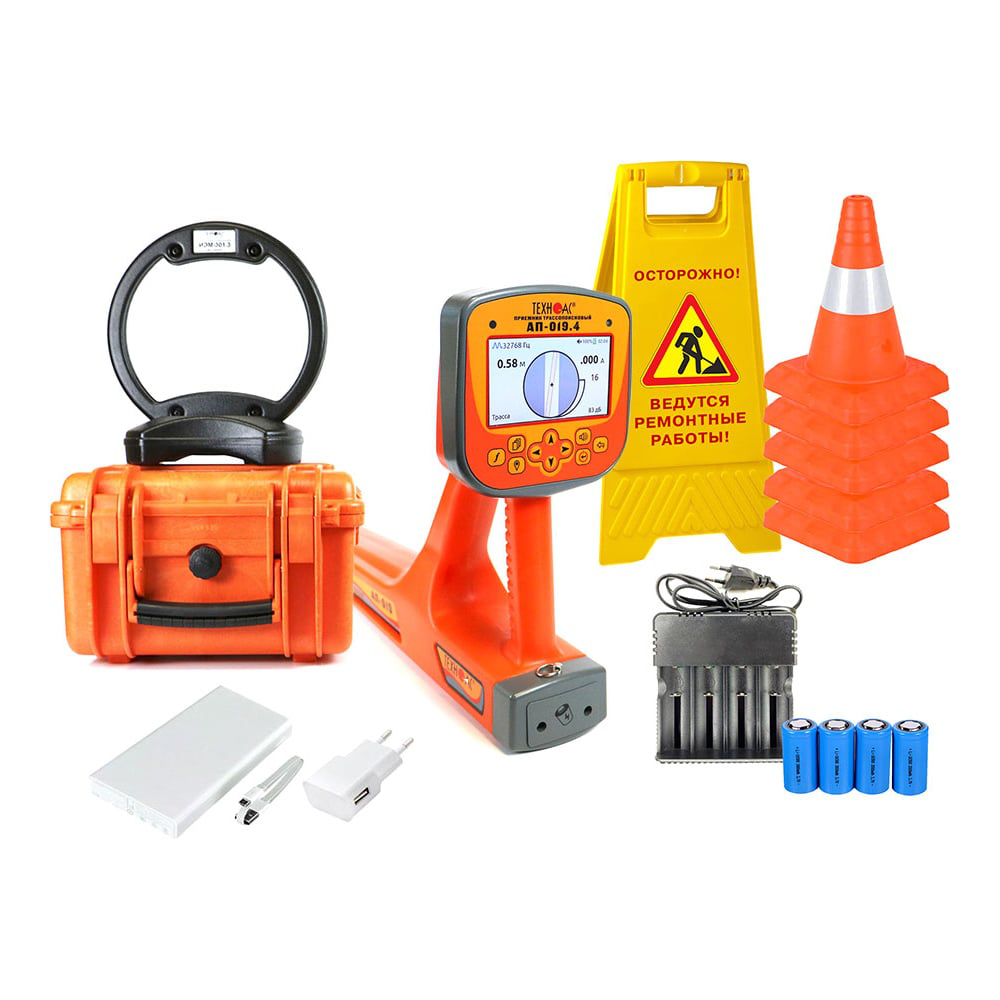 Трассопоисковый комплект для поиска подземных коммуникаций (кабельных линий, металлических трубопроводов, и прочих коммуникаций из токопроводящих материалов). В составе комплекта приемник в виде моноблока с цветным ЖК дисплеем, на который выводится изображение трассы и в автоматическом режиме происходит расчет глубины залегания коммуникации до 30 м, а также величины тока в линии и самый мощный мультичастотный генератор в линейке ТЕХНО-АС, с дальностью работы до 10 км. Назначение кабелетрассоискателя: Определение местоположения и глубины залегания скрытых подземных коммуникаций на глубине до 30 м; Трассировка коммуникаций с использованием генератора на расстояние до 10 км; Поиск электрических кабелей под напряжением; Поиск мест пересечения трубопровода и кабеля; Определение мест повреждения кабельных линий; Обследование участков местности перед проведением земляных работ.