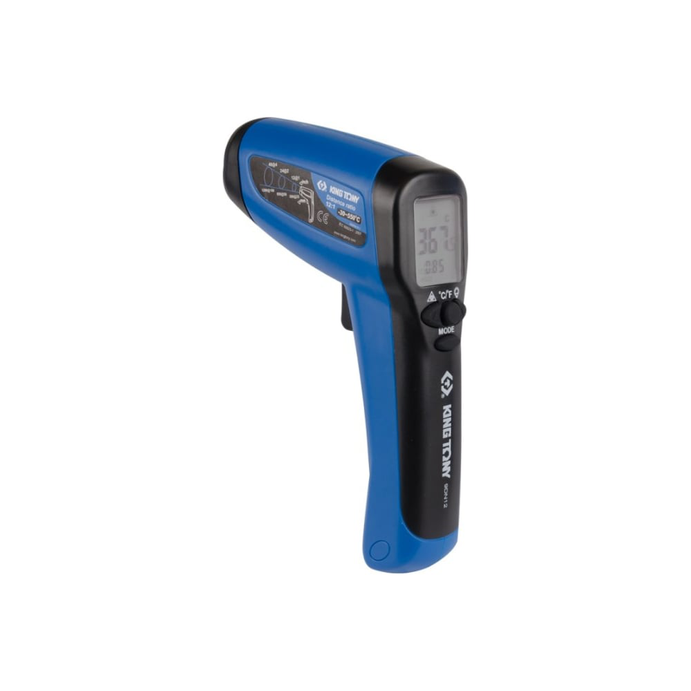 Бесконтактный пирометр KING TONY 9DN12 используется на станциях технического обслуживания, в автосервисах и автомастерских. Он предназначен для бесконтактного измерения температуры поверхности различных объектов. Полученные данные выводятся на крупный ЖК-дисплей с подсветкой, позволяющей работать даже при слабом освещении. Точный выбор участка измерения достигается с помощью инфракрасной точки позиционирования.