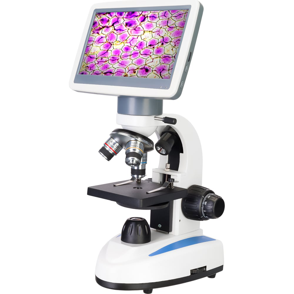 Микроскоп Levenhuk D85L LCD предназначен для работы с образцами любой степени прозрачности на увеличении от 40 до 1600 крат. Также он снабжен встроенной 2-мегапиксельной камерой, которая позволяет фотографировать образцы и записывать видеоролики исследований. Данные сохраняются на карту памяти. Еще одна особенность модели – большой 7-дюймовый ЖК-экран, который удобно использовать для длительных и тщательных исследований микропрепаратов.Оптическая система микроскопа включает ахроматические объективы разной кратности. Общее оптическое увеличение составляет от 40 до 400 крат, увеличение до 1600 крат достигается за счет цифрового зума. Картинка с оптики выводится на экран в реальном времени в высоком разрешении, позволяющем различать очень мелкие структуры. Кнопки управления вынесены на боковую стенку и заднюю крышку, поэтому внешне прибор выглядит довольно лаконично. Доступна грубая и точная фокусировка.Для размещения микропрепаратов используется предметный столик с зажимами и диском с диафрагмами. Подсветка комбинированная – светодиоды расположены по обе стороны от предметного столика. Есть регулировка яркости. Для питания освещения можно использовать подключение к сети или батарейки.Комплектация:Микроскоп с цифровой камерой 2 Мпикс и ЖК-экраномАхроматические объективы 4х, 10х, 40xКонденсор N.A. 0,65 с диском с диафрагмамиСетевой шнурКарта памяти SD 16 ГБАдаптер и сетевой шнур для питания камерыПылезащитный чехолИнструкция по эксплуатации и гарантийный талон