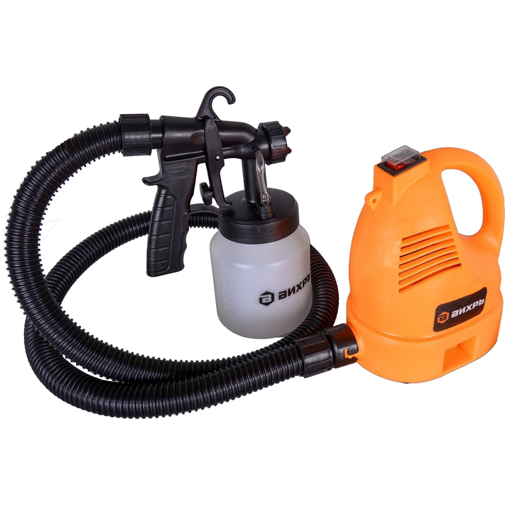 Краскопульт электрический Вихрь ЭКП-700В мощностью 700 Вт используется для строительных и ремонтных работ. Предназначен для лакокрасочных материалов с максимальной вязкостью 80 DIN/ceк. Давление, создаваемое в распылительной системе, позволяет повысить производительность работы до 1 л/мин. Диаметр сопла 2,6 мм обеспечивает высокую скорость покраски, а также позволяет регулировать направление распыления красящих веществ. Отдельно выведенный бачок объемом 800 мл снижает нагрузку при использовании. Функция регулировки подачи краски позволяет контролировать ее расход. Краскораспылитель Вихрь ЭКП-700В имеет шланг длиной 1,5 м, обеспечивающий возможность маневрирования пистолетом-распылителем. Вынесенное расположение компрессорного блока облегчает процесс длительного использования. В комплекте имеется плечевой ремень и воронка для удобства наполнения бачка. Низкий уровень шума обеспечивает комфорт во время работы. Электрический краскопульт применяется для масляных, эмалевых, пластичных, водоэмульсионных красок, грунтовки, серебрянки и антикоррозийных покрытий.