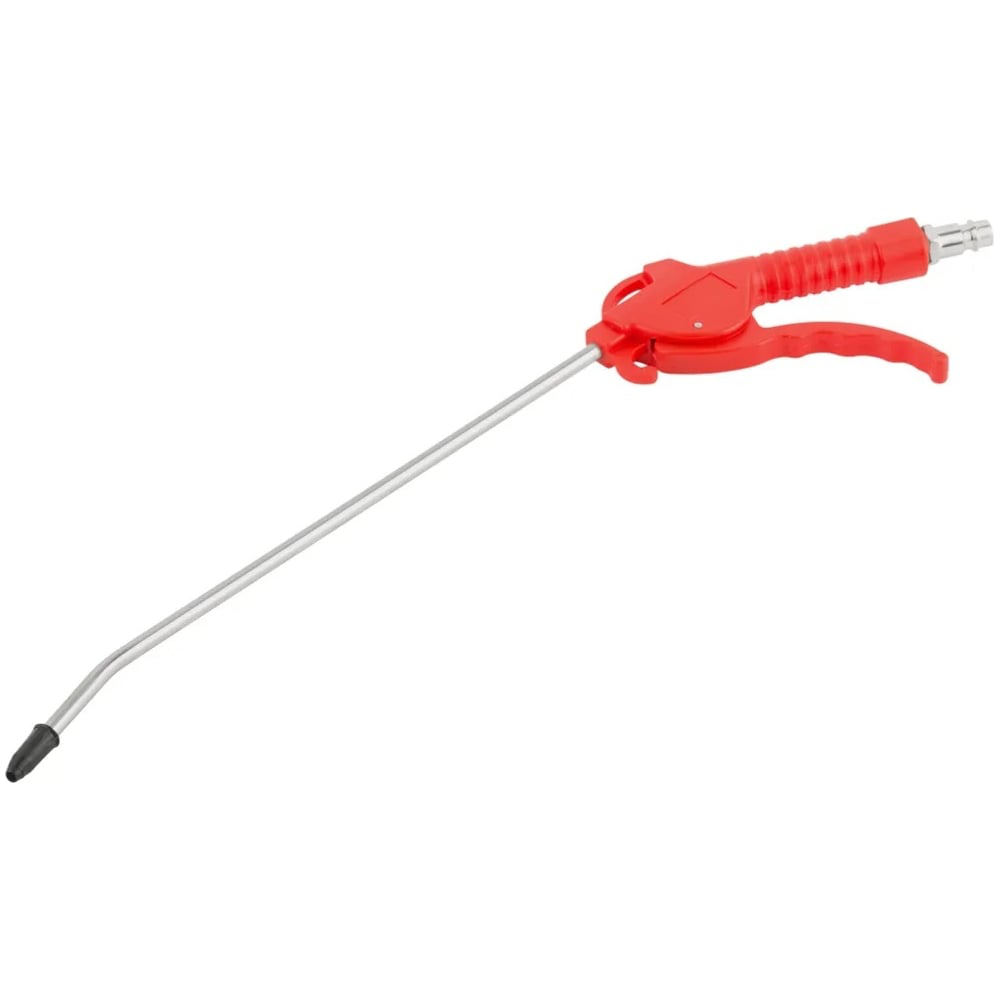 Продувочный удлиненный пистолет применяется для удаления загрязнений и пыли из труднодоступных мест. Жесткий каркас обеспечивает долгий срок службы приспособления. Принцип работы на сжатом воздухе предусматривает возможность длительной работы без перерывов, а также малый вес. Модель оснащена крючком для удобного хранения в подвешенном состоянии. Дополнительные характеристики: Рабочее давление 3-6 бар. Максимальное давление - 8 бар Насадка - инструментальная сталь.