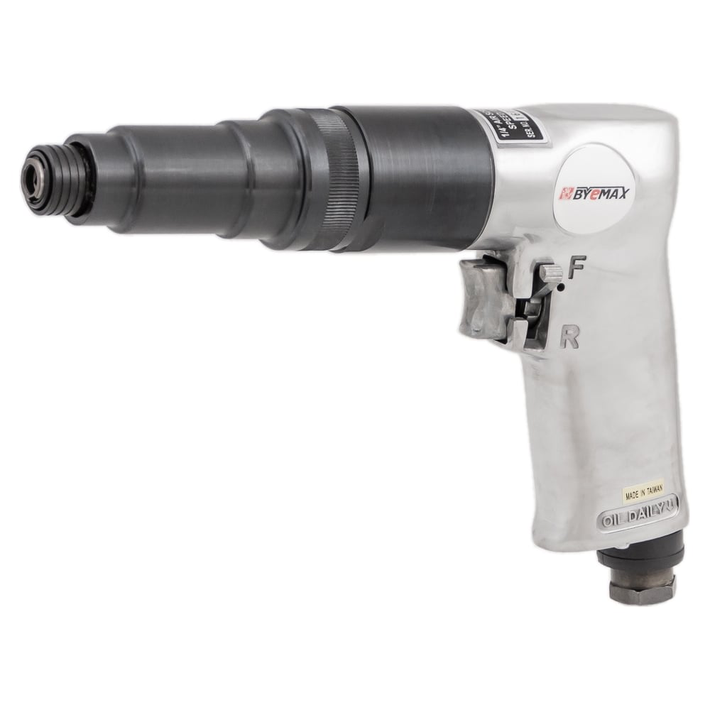 Пистолетный пневмошуруповерт Byemax BM-803 используется для быстрого откручивания и закручивания резьбовых соединений. Корпус изготовлен из прочного материала, который устойчив к механическим повреждениям. Пистолетная форма обеспечивает надежный захват, гарантируя комфортное использование. Модель работает на сжатом воздухе, что предусматривает внушительный рабочий ресурс и возможность длительное время работать без остановки.