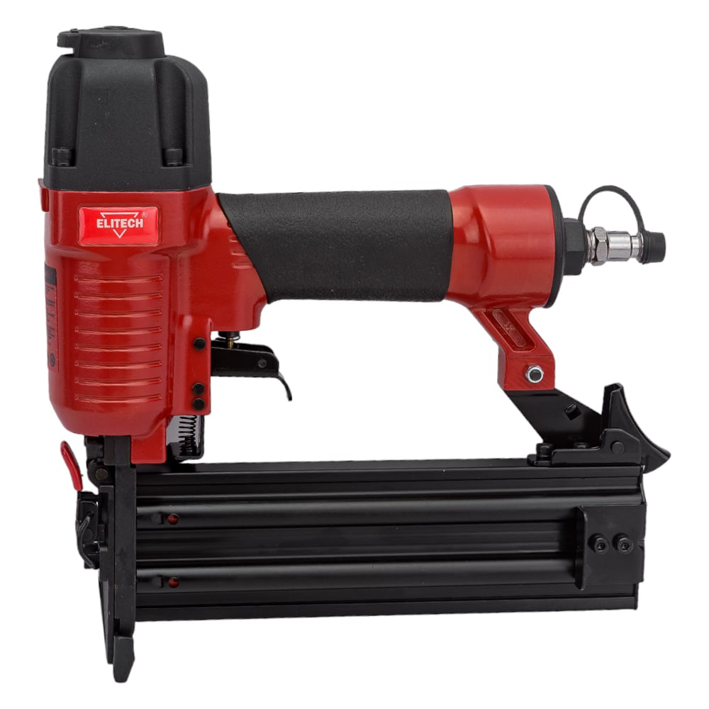 Гвоздезабивной финишный пневмопистолет ELITECH 195025 используется для установки гвоздей длиной 15-50 мм. С его помощью можно скреплять между собой листовые материалы, вагонки, наличники и прочие изделия. Пневмодвигатель отличается высокой производительностью. Прочный металлический корпус устойчив к механическим повреждениям. Откидная крышка ударного механизма позволяет быстро извлечь застрявший крепеж.