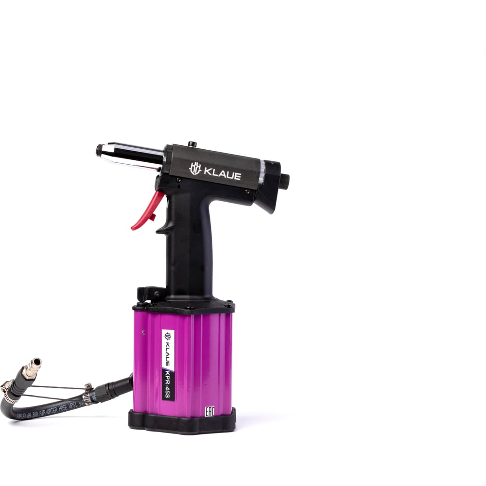 Пневмогидравлический заклепочник для вытяжных заклепок. Инструмент для заклепок подходит доя стабильной работы на крупносерийном производстве, в том числе в сложных условиях: минусовой температуре (до -15С) повышенной влажности на взрывоопасных производствах Заклепочный инструмент может работать с заклепками из любого материала (алюминия (Al), стали (St) и нержавейки (А2), диаметром 3,0/3,2 мм – 4,0 мм – 4,8/5,0 мм.