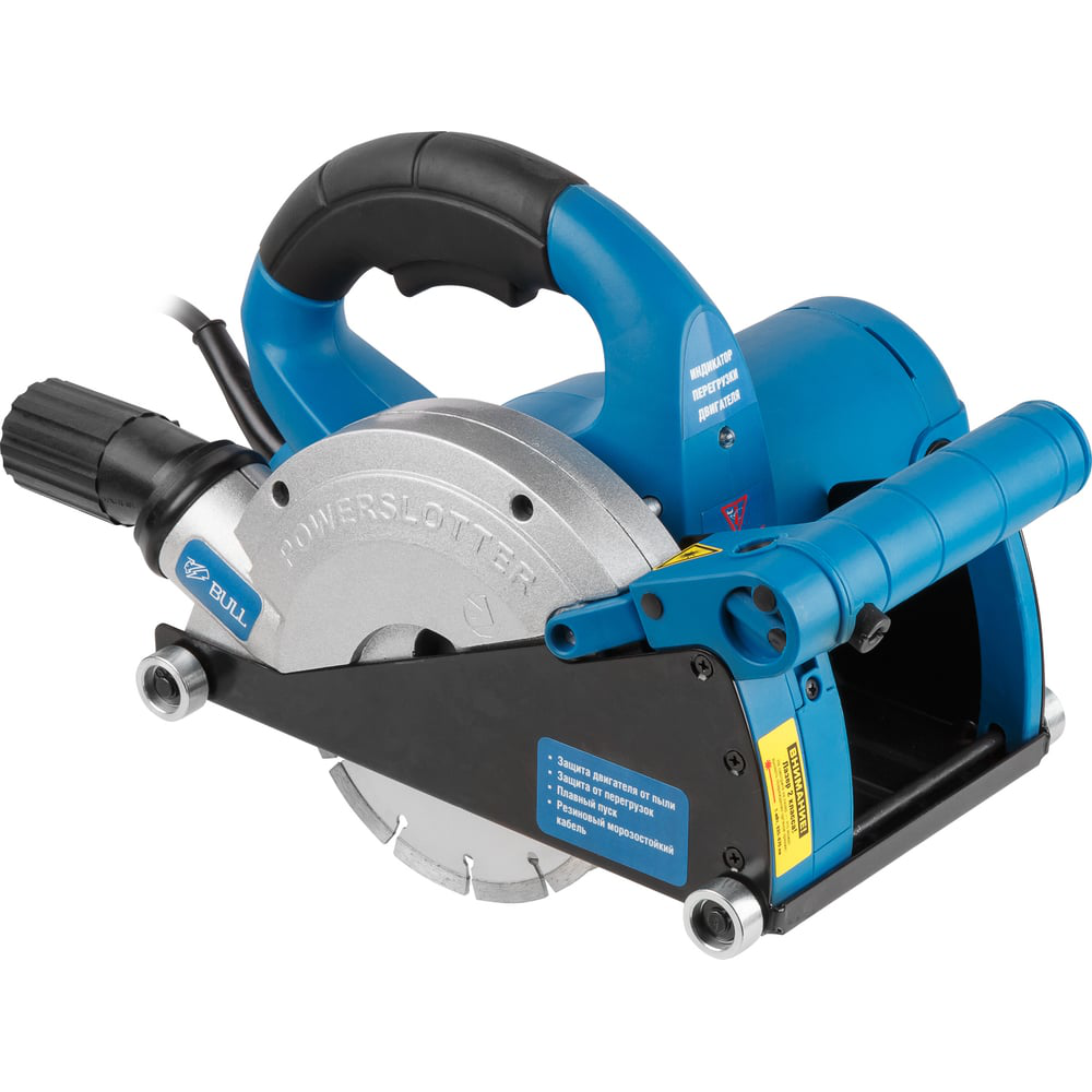 Бороздодел BULL MJ 1501, в сумке 12043525 для работы двумя дисками по 150 мм имеет пылезащищенный двигатель мощностью в 1600 Вт. Мягкому началу работы способствует функция плавного пуска. Долговечность инструмента обеспечивает защита от перегрузок. Для точности реза в конструкции бороздодела предусмотрен лазерный указатель. Мягкая накладка на рукоятке обеспечивает надежный захват. Для хранения и транспортировки инструмента в комплектацию входит сумка.