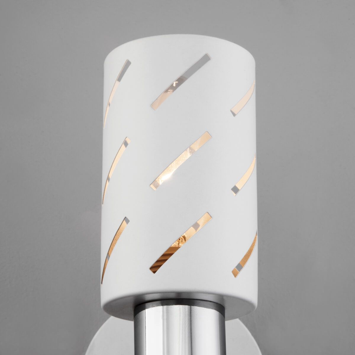 Расширенная гарантия на товар составляет 3 года. поставщик рекомендует использовать лампы накаливания с цоколем E14 для освещения площади 2 м2. Спот Eurosvet Fente 20090/1 белый/хром в современном стиле используется в интерьере Для гостиной с установкой На стену.