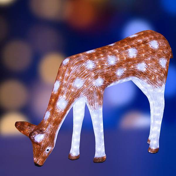 Акриловая светодиодная фигура Олень мама коричневая размером 130x100 см представляет собой уникальный декоративный элемент, который станет ярким акцентом в любом интерьере или на уличном пространстве.Фигура изготовлена из прочного акрила, который обеспечивает долговечность и устойчивость к воздействию внешних условий. Она имеет форму оленя-мамы, выполненного в коричневых тонах, что придает ей естественный и приятный вид.