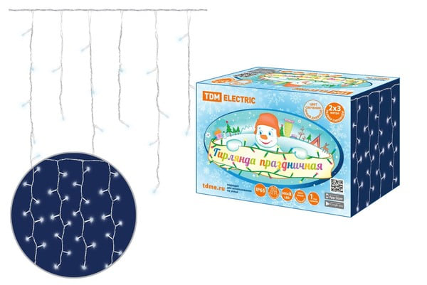 В нашем магазине «Главэлектрика» в Волгограде, вы можете приобрести товар: «Уличная IP65 Гирлянда Занавес 2х3м, 600LED, 6500К, бел. шнур, посл. подкл, 250 В, TDM» с доставкой по г. Волгоград.