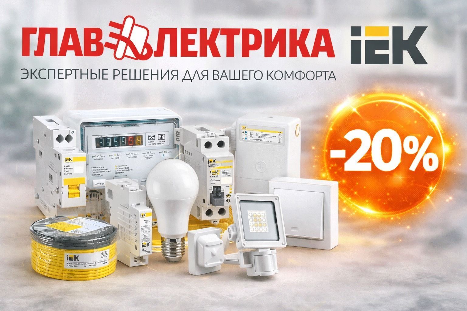 Скидка 20% на электротехнику IEK — специальное предложение от ГЛАВЭЛЕКТРИКА!