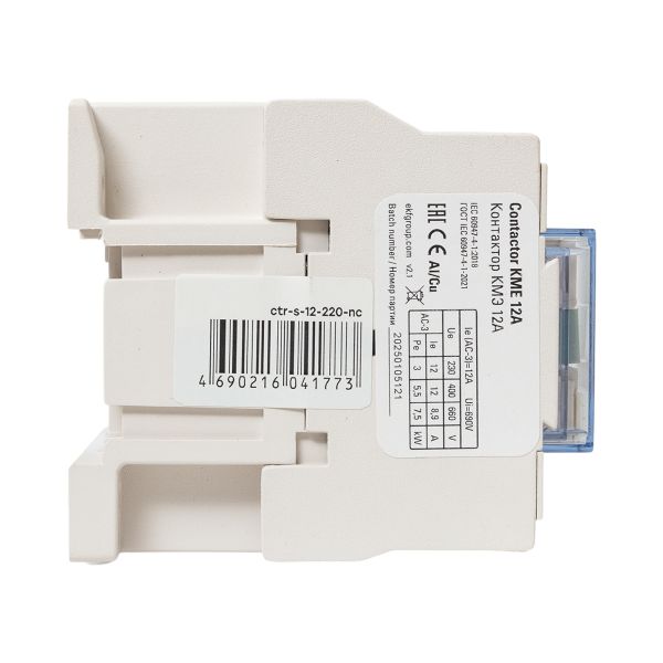 Контакторы КМЭ EKF PROxima состоят из корпуса, закрепленных в нем неподвижных контактов, подвижных контактов, которые закреплены в подвижной части магнитной системы. Неподвижная часть магнитной системы закреплена жестко в корпусе КМЭ. Пружина препятствует смыканию контактов. При подаче напряжения на катушку управления в магнитной системе контактора возникает магнитное поле, которое, преодолевая сопротивление пружины, смыкает магнитную систему и замыкает контакты. При отключении напряжения с катушки управления пружина размыкает контакты. Возможна коммутация алюминиевым и медным проводом. Основное назначение контактора КМЭ – частые дистанционные включения и выключения силовых электрических цепей в нормальном режиме работы.