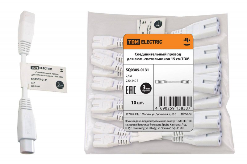 Соединительный провод для люминесцентных светильников длиной 15 см от производителя TDM - это надежное и удобное решение для подключения нескольких светильников к одному источнику питания. Изготовленный из качественных материалов, этот провод обеспечивает стабильную передачу электричества и долгий срок службы. Прост в установке и использовании, он позволит вам легко организовать освещение в помещении, создавая комфортные условия для работы или отдыха.