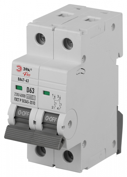В нашем магазине «Главэлектрика» в Волгограде, вы можете приобрести товар: «Автоматический выключатель ЭРА PRO VA63-2P63D4.5 ВА47-63 2P 63А кривая D 4,5кА (кратно 1)» с доставкой по г. Волгоград.
