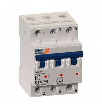 Автоматический выключатель КЭАЗ OptiDin BM63 3P 16А (D) 6кА, 260807 - это электрическое устройство, предназначенное для защиты электрических цепей от перегрузок и коротких замыканий.Он имеет три полюса и номинальный ток 16А, что позволяет использовать его в различных электрических сетях.