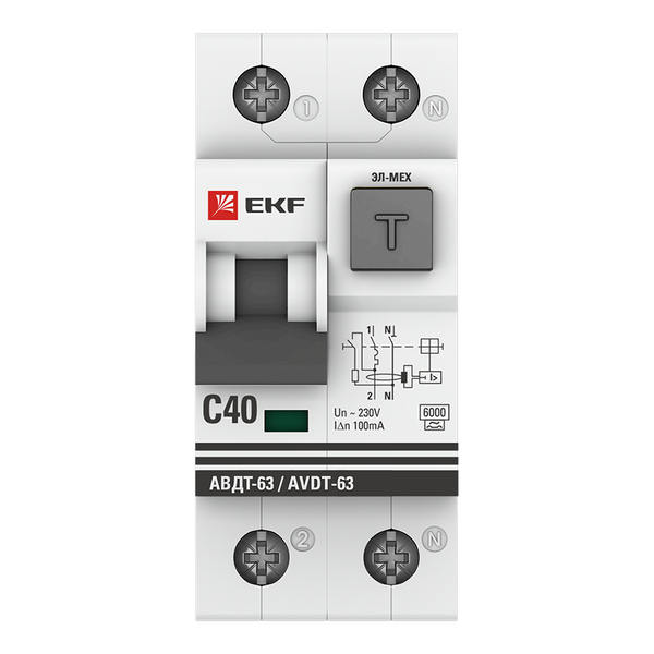 ОБНОВЛЕНИЕ ЛИНЕЙКИ PROXIMA Артикул аналог: D63N26MA40C100 Автоматический выключатель дифференциального тока АВДТ-63 EKF PROxima представляет аппарат, сочетающий функции автоматического выключателя с электромеханическим или электронным УЗО. При обнаружении автоматическим выключателем в защищаемом участке сети тока утечки (повреждения) на землю или сверхтока (тока перегрузки или короткого замыкания) происходит срабатывание устройства, приводящее к отключению защищаемой сети. Возможна коммутация алюминиевым и медным проводником. Автоматический выключатель дифференциального тока малогабаритный АВДТ-63М EKF PROxima представляет аппарат, сочетающий функции автоматического выключателя с электронным УЗО типа АС в компактном корпусе шириной один модуль. При обнаружении автоматическим выключателем на защищаемом участке сети тока утечки (повреждения) на землю или сверхтока (тока перегрузки или короткого замыкания) происходит срабатывание устройства, приводящее к отключению защищаемой сети. Особое отличие дифференциальных автоматических выключателей EKF с электронным УЗО – в наличии блока защиты от перенапряжения. Возможна коммутация алюминиевым и медным проводом.