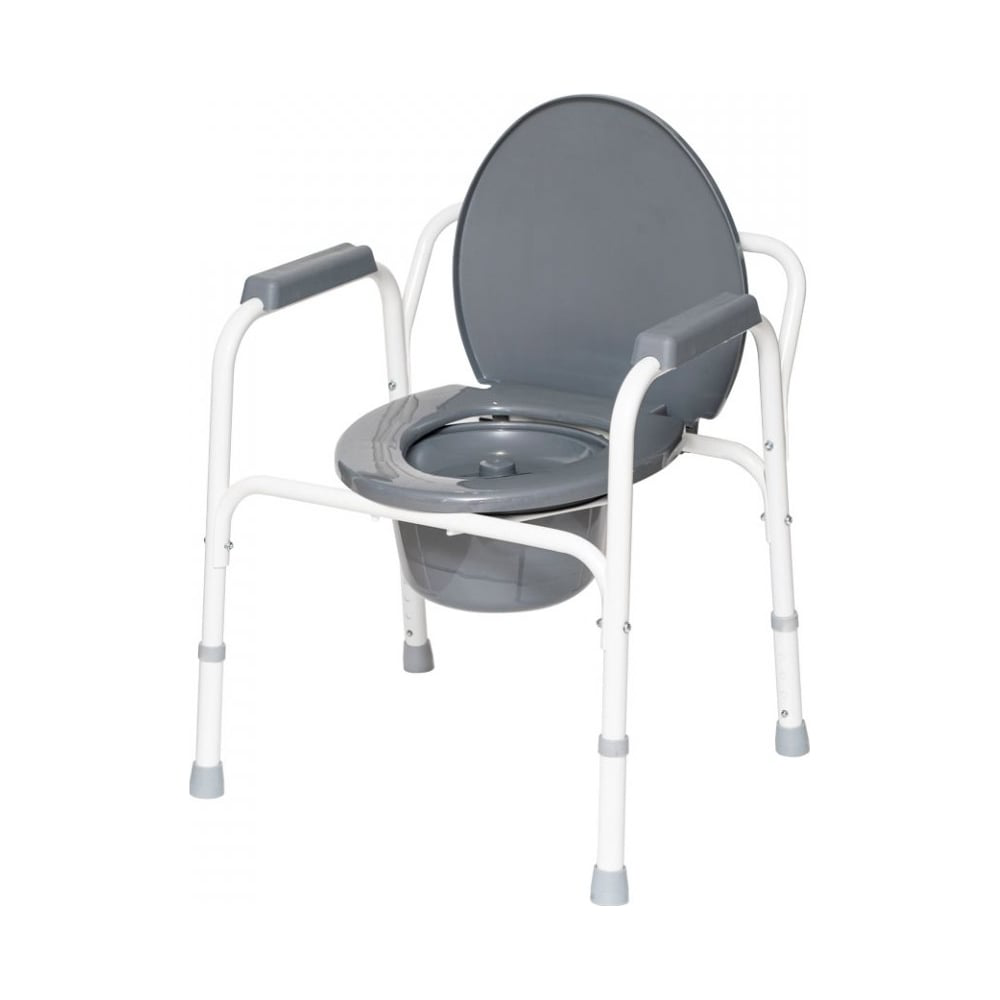 Кресло-туалет Barry медицинский вариант исполнения WC100 обладает стальной конструкцией, высота сиденья регулируется. Модель оснащена съемным ведром с крышкой и пластиковыми подлокотниками. Вес изделия 6 кг, кресло-туалет компактное и мобильное — легко собирается, разбирается, занимает мало места. Ножки оборудованы резиновыми наконечниками, которые предотвращают скольжение на плитке или ламинате. Максимальная нагрузка, которую выдерживает изделие — 100 кг. Дополнительная информация: Высота сиденья: 38-48 см; Шаг регулировки высоты: 2.5 см; Расстояние между поручнями: 47.5 см.