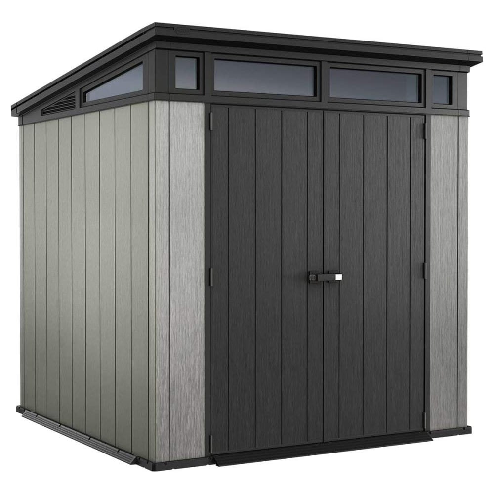 Хозяйственный блок Keter Artisan 7x7 230459 - чрезвычайно прочная постройка для хранения техники, инструментов, садовой мебели, а также для коммуникационных систем, генератора, компрессора, газового баллона. Имеет износостойкую фактурную крышу. Двойные настенные панели, изготовленные по технике DUOTECH, легко собираются благодаря готовым пазам и выступам. Сборка хозблока занимает 2-3 часа. В зимнее время снеговая нагрузка не страшна, так как каркас усилен стальной конструкцией. Пол изготовлен из сверхпрочных панелей, которые выдерживают газонокосилку.